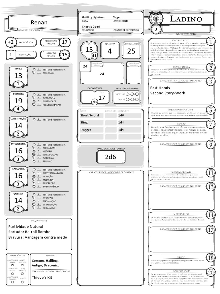 DnD 5e Ficha Ladino Editável Lazer