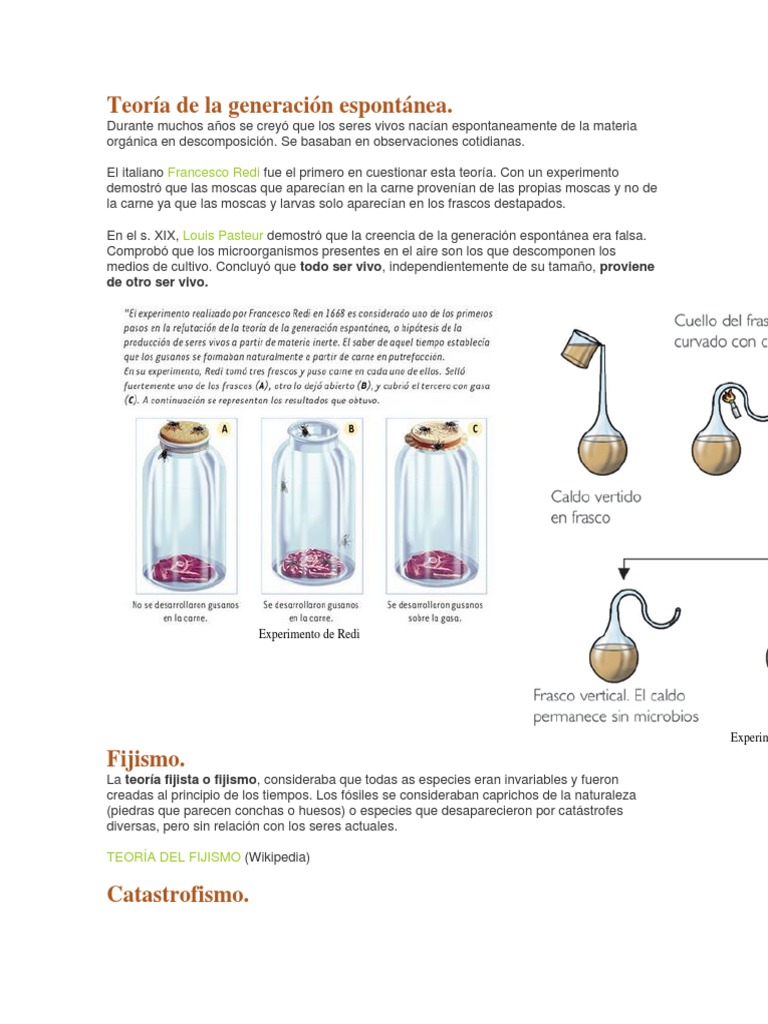 Teoría de La Generación Espontánea Evolución Conceptos biologicos